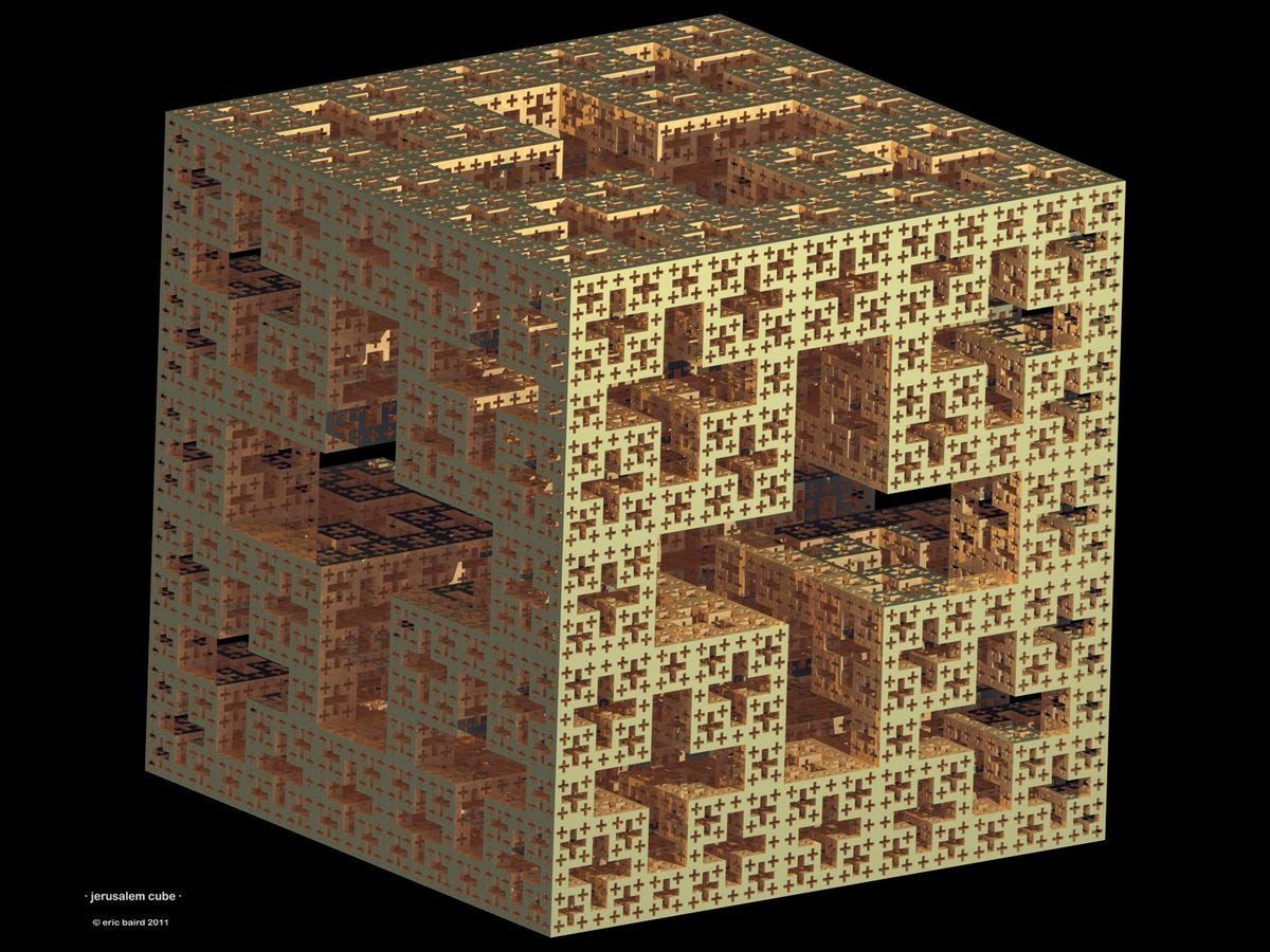 Math is not my thing, which as I write this frustrates me because I suspect that if I understood more, I’d be able to consider the significance of cubes in fractals and Zero Volume, whereby at each iteration in the fractal, a portion of the volume is removed and this approaches zero as these iterations go to infinity. The Jerusalem Cube was first described by Eric Baird in 2011 when he drilled Greek cross-shaped holes into a cube.